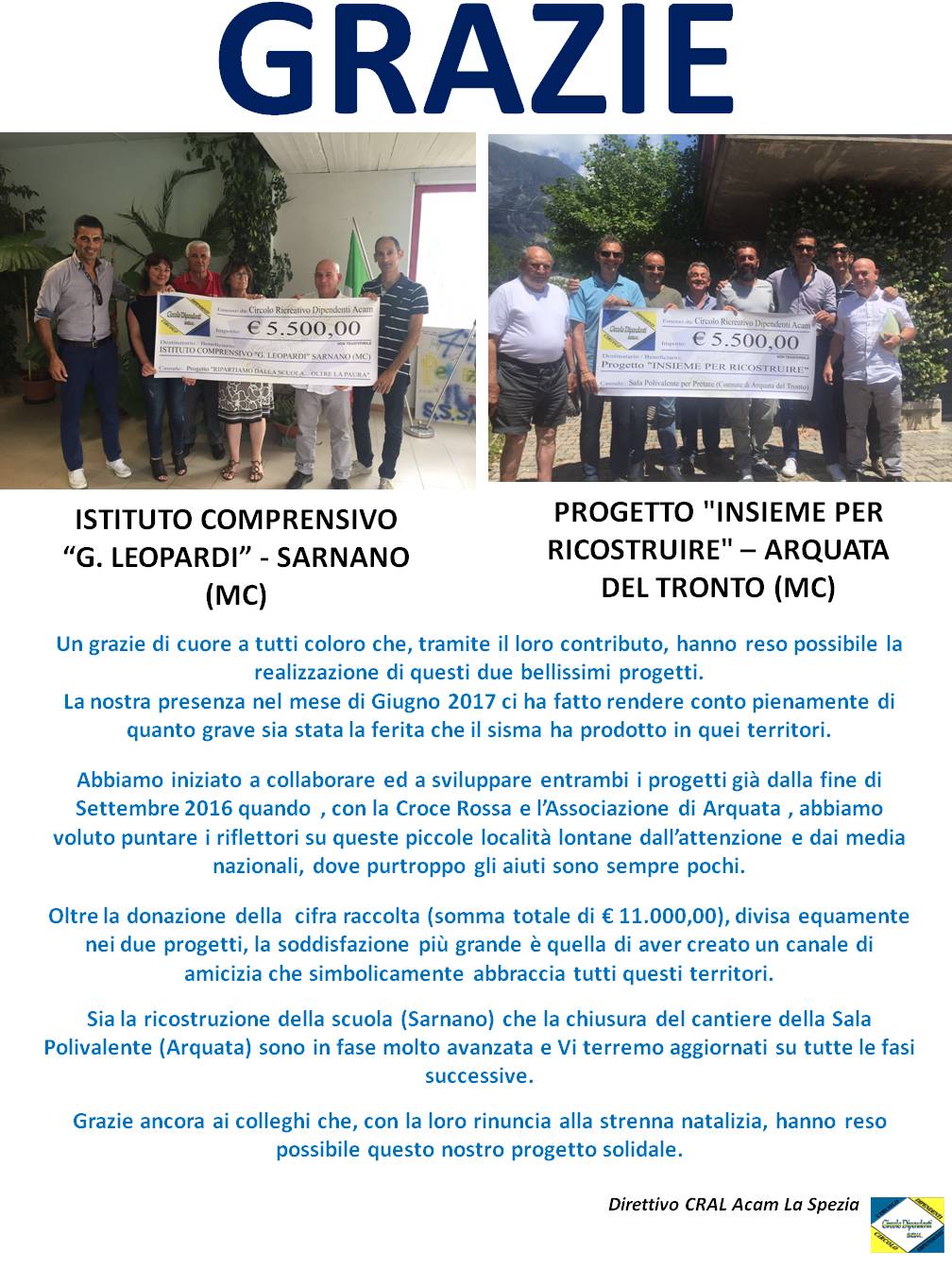 2017 - UMBRIA - DONAZIONE - Terremoto